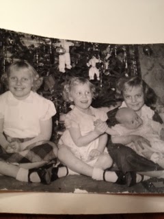 Our parents loved to take photos of their four daughters, especially at Christmastime. The traditional Christmas photo in front of the tree is scattered in our old picture collections.